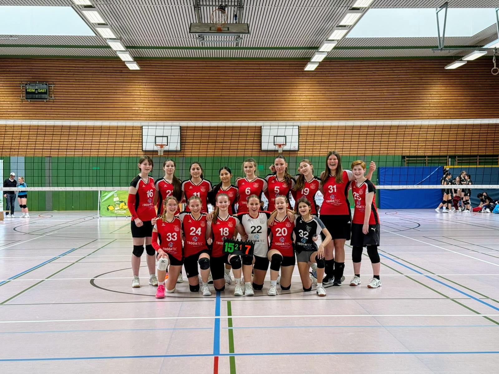 Am letzten Spieltag der Saison ging es für die Mädchen der U18 darum, die gute Leistung der Saison zu bestätigen und den dritten Tabellenplatz zu verteidigen. Gegner in der Heimhalle war niemand anders als die ungeschlagenen Tabellenführer aus Königshardt und der punktgleiche Tabellennachbar aus Dinslaken.