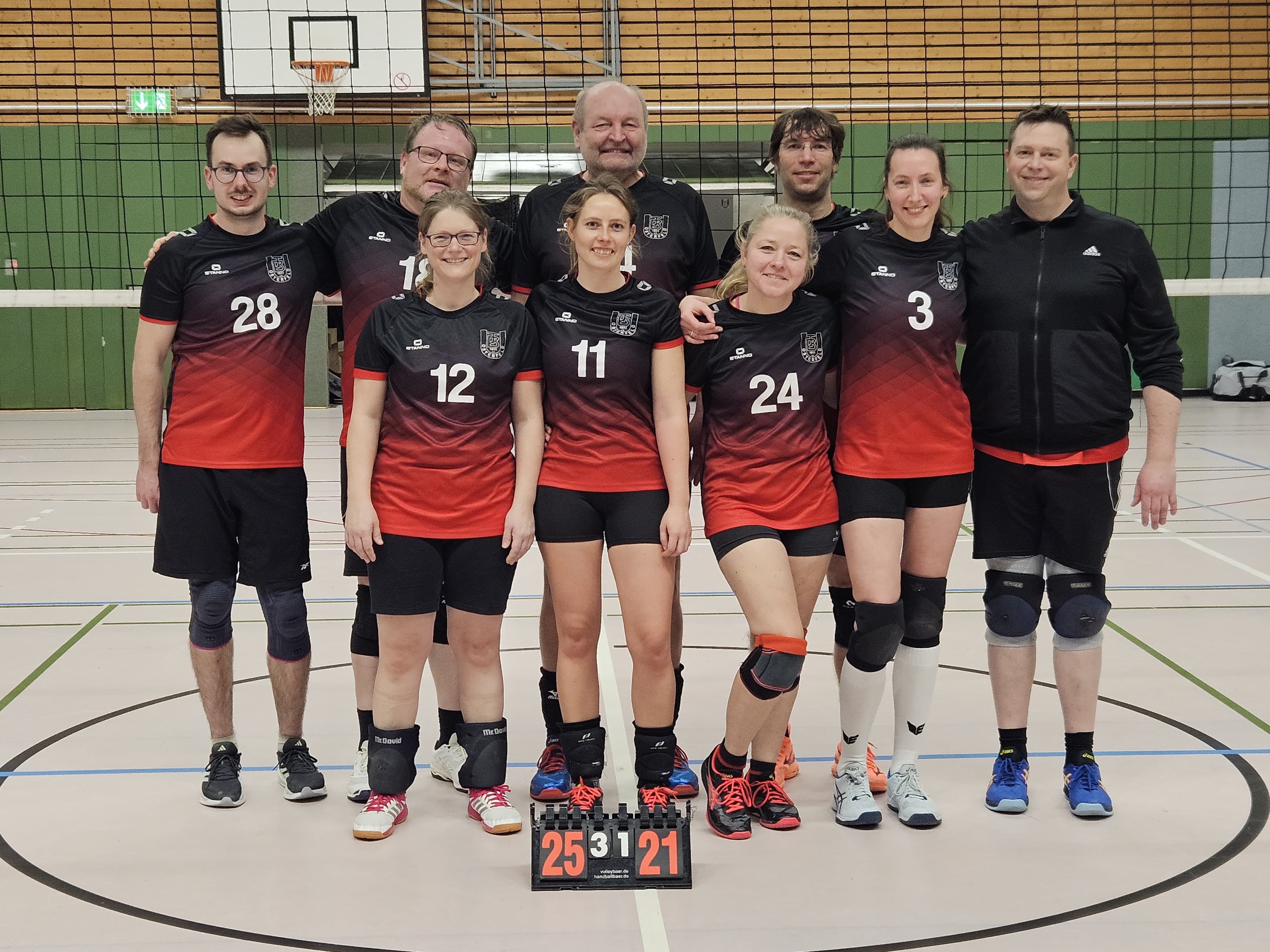 Jetzt war es endlich soweit! Nachdem der aktuelle Tabellenführer in der BFS Hobby-Mixed Kreisliga B des Kreises Mülheim / Oberhausen dreimal aus personellen Gründen in der Hinrunde das Spiel verschieben musste, konnte die Stockumer Schule nunmehr eine vollständige Mannschaft für das Match in der Theodor-Heuss-Realschul-Halle stellen. Mehr noch: vorher war im Sinne des Gastes die Option eingeräumt worden, dass die Mannschaften auch nur mit zwei Damen spielen konnten. Die Gäste aus Voerde (der "Kreis Mülheim / Oberhausen" ist insofern ein bisschen irreführend) konnten aber noch eine dritte Dame akquirieren, so dass im Endeeffekt ein klassisches Mixed-Spiel ausgetragen wurde.