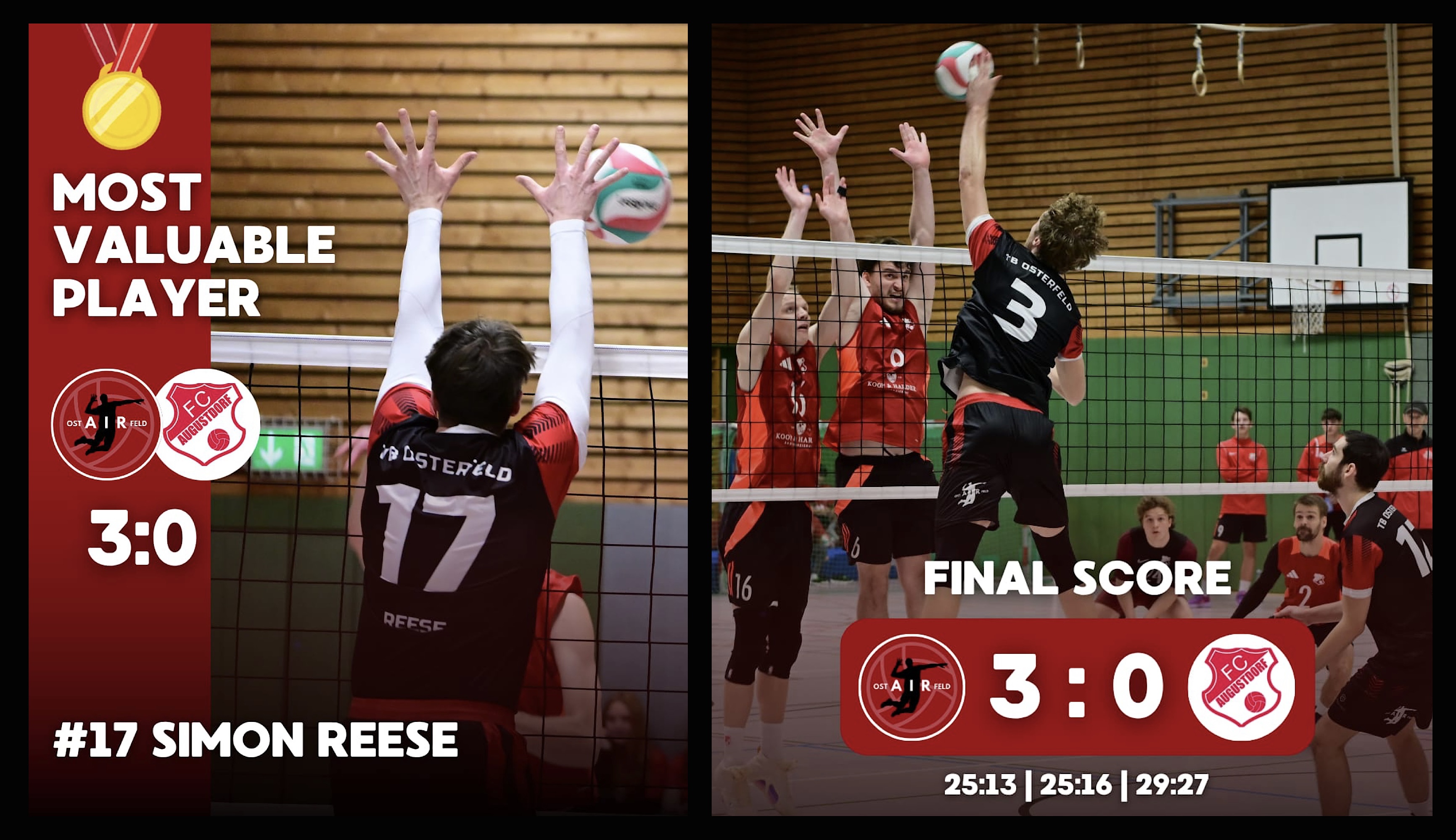 TB Osterfeld vs. FC Augustdorf 3:0 (25:13/25:16/29:27)