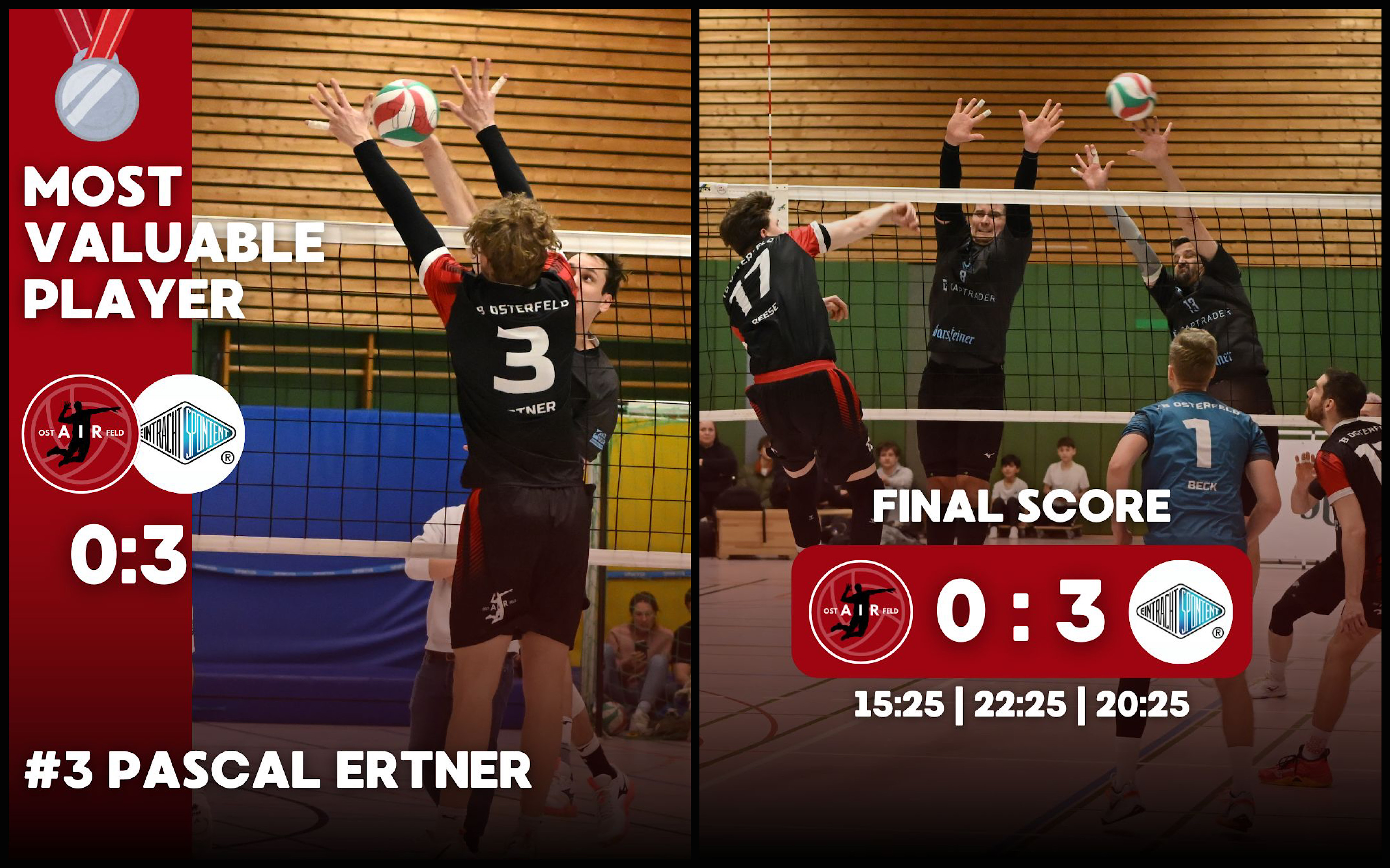 Im dritten Durchgang stellte Köster im Mittelblock um und brachte Tim Willbrand für Nils Joneleit. Der Satz begann erneut ordentlich, Osterfeld konnte zunächst mithalten. Mitte des Satzes gelang es jedoch nicht mehr, das eigene Sideout konsequent zu halten, sodass Spontent sich von 10:9 auf 18:11 absetzte. Die Partie plätscherte in der Folge etwas dahin, ehe die Gäste den Satz mit 25:20 und damit das Spiel mit 3:0 für sich entschieden.