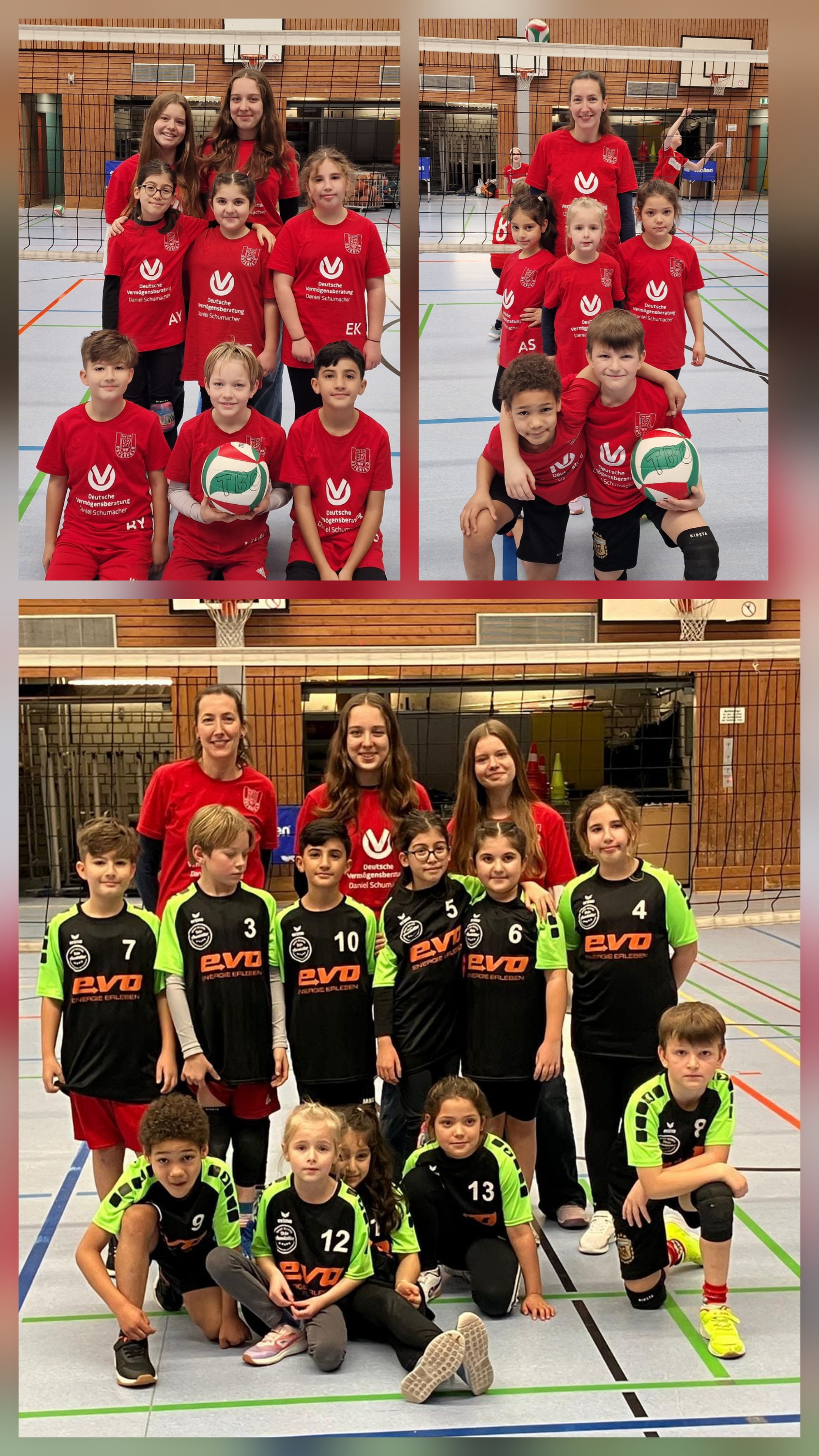 Am letzten Sonntag richtete der TV Jahn Königshardt nicht nur für die "regulären" U12 ein Turnier aus, sondern bot parallel ein "VolleyCool" - Format an. Damit sollten auch die Kids abgeholt werden, die aufgrund von Alter / Physis und Spielerfahrung noch nicht bei den "VolleyPros" der U12 mithalten können. Dementsprechend durften mit vereinfachten Regeln und auch mit viel Augenmaß der Turnierleitung bzw. der Trainer auf dem Kleinstfeld Kinder im 2 vs. 2 mit Auswechselspielern gegeneinander spielen. Dabei stand der Spaß immer im Vordergrund.
