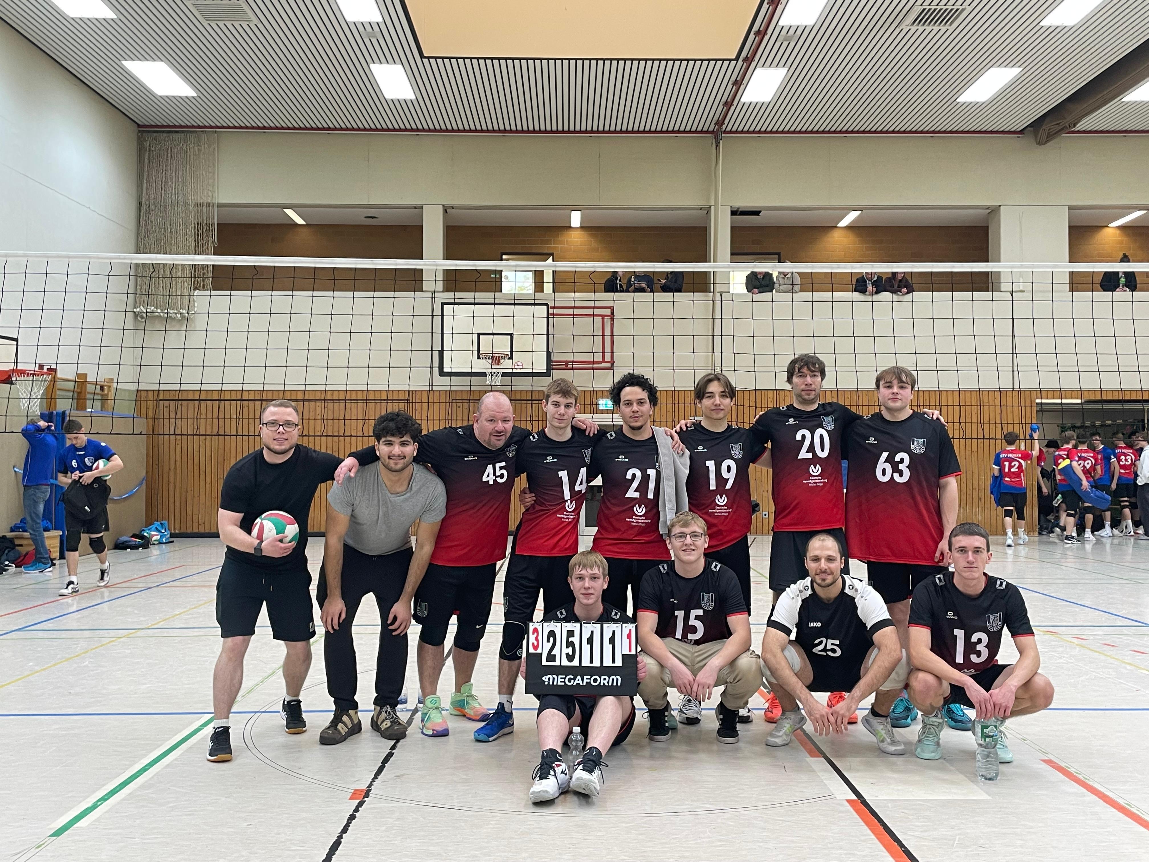 Die Spielgemeinschaft von Trainer Egbert Spickenbom holte gegen TuSEM Essen wichtige drei Punkte und ging mit 3:1 als Sieger vom Feld. Dabei sah es im ersten Satz noch nicht rosig aus. Die SG haderte mit der Annahme auf dem stumpfen Hallenboden. Nach zwei Auszeiten sowie zwei Auswechslungen konnte dennoch kein großer Umbruch erzielt werden (13:25).